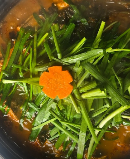 - 6. 고기가 부드럽게 익고 나물의 향이 고기에 충분히 배어들면 대파를 올려 마무리합니다.