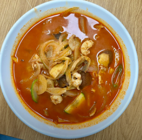- 주요 재료: 오징어, 새우, 바지락 등 해산물 믹스, 돼지고기(목살 또는 삼겹살) 100g, 짬뽕 면 또는 생면
