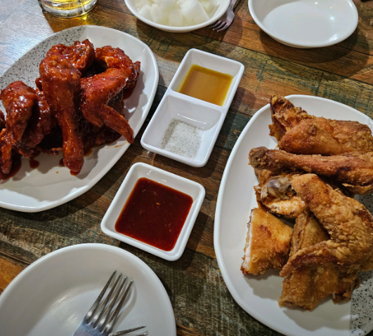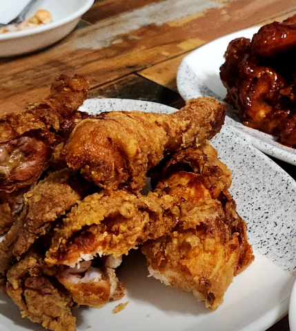 둘째, 옛날식 튀김옷의 바삭함입니다. 두꺼운 파우더 옷이 아닌, 얇고 바삭하며 고소한 맛이 살아있는 치킨의 튀김옷은 마치 어머니가 튀겨주신 것 같은 정겨운 맛을 선사합니다.