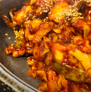 - 볶기: 달군 팬에 재워둔 삼겹살과 주꾸미를 먼저 볶다가, 고기와 주꾸미가 익기 시작하면 준비한 채소를 넣고 빠르게 볶아 쭈삼불고기를 완성합니다.
