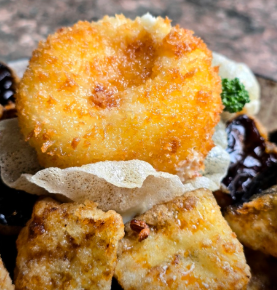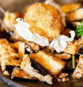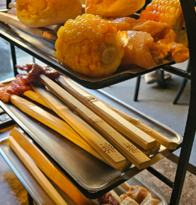 하오카오스탠의 원시 꼬치구이 세트는 여러 명이 함께 즐기기 좋은 메뉴로, 다양한 육류와 채소를 숯불에 구워 먹는 과정 자체가 즐거운 경험을 선사합니다. 특히 양갈비살과 양어깨살은 잡내 없이 부드러워 양고기를 처음 접하는 사람들도 부담 없이 즐길 수 있습니다. 이 외에도 시원한 고기 빙수, 쫀득찹쌀탕수육 등 이색적인 중식 기반의 사이드 메뉴들이 원시 꼬치구이와 훌륭한 조화를 이룹니다.