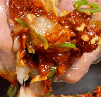 - 양념장 만들기: 고추장 3T, 고춧가루 1T, 간장 1T, 다진 마늘 1T, 설탕 1T, 물엿 1T, 맛술 1T, 참기름 0.5T, 후추 약간을 섞어 양념장을 만듭니다. (취향에 따라 매실액을 추가하면 좋습니다.)