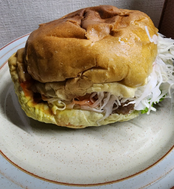 - 조립: 빵 아랫부분에 소스를 바르고, 채 썬 양배추를 올립니다. 그 위에 패티, 계란, 다시 소스를 듬뿍 올린 후 빵 윗부분을 덮으면 추억의 옛날 햄버거 완성입니다.