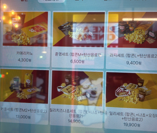 | [영화볼땐] 혼영 세트 | [오리지널팝콘M+탄산음료1] | 7,500 |