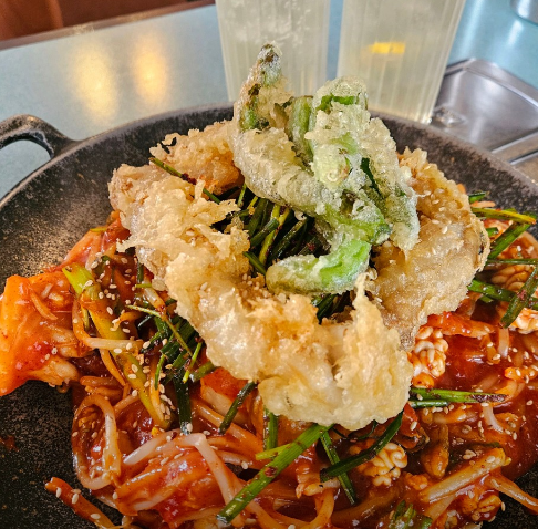 성수AGU는 우리가 알던 아귀찜에 현대적인 감각을 더한 이색 맛집입니다. 특히 마장동에서 당일 도축한 곱창을 튀겨 올린 아귀찜은 비주얼부터 압도적인데요. 충남 청양 산마늘의 알싸한 향과 아귀찜의 매콤한 양념은 그야말로 찰떡궁합을 자랑합니다. 충남 청양 산마늘은 육류뿐만 아니라 해산물 요리의 비린내를 잡아주는 데도 탁월하기 때문입니다.