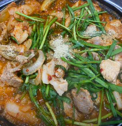| 김치짜글이 | 7,000원 | 국내산 돼지고기 듬뿍, 김치/부추/라면사리 무한 리필 (셀프) |