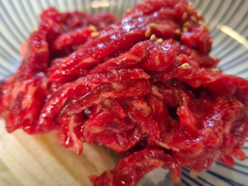 - 고기 양념: 다진 한우에 양념 재료와 다진 양파, 마늘을 넣고 끈기가 생기도록 치대며 충분히 섞어줍니다. (언양불고기의 부드러움을 위해 치대는 과정이 중요합니다.)
