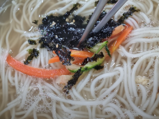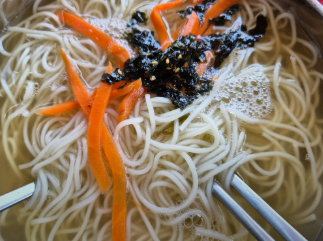 - 완성: 그릇에 면을 담고 뜨거운 육수를 부은 후, 준비된 고명과 김가루를 올리고 양념장을 곁들입니다.