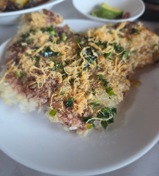 - 마지막에 송송 썬 부추와 들깨가루를 듬뿍 올려 합천식 돼지국밥의 풍미를 더합니다.