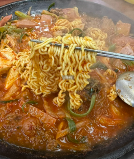 - 마무리: 끓기 시작하면 양념장을 풀고 라면 사리를 넣습니다. 국물이 충분히 졸아들어 재료에 맛이 배면 의정부부대찌개 완성!