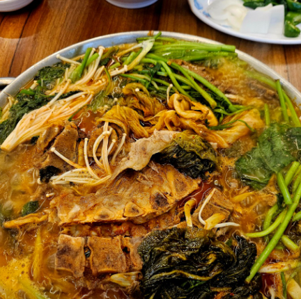 | 돌판해물뼈찜 大 | 56,000원 | 푸짐한 양의 해물과 등뼈가 가득한 찜 요리. |