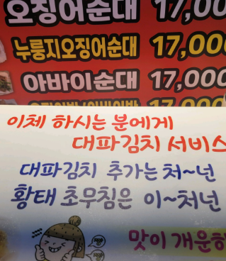 | 주요 메뉴 | 오징어순대 17,000원 (점심 특선 운영 시간 11:00 ~ 15:00) |