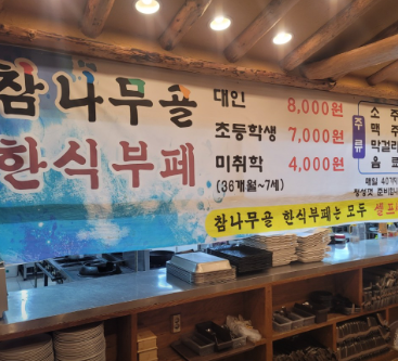 참나무골 한식뷔페의 대표 메뉴는 바로 '한식 뷔페' 그 자체입니다. 매일 메뉴가 바뀌는 것이 특징이며, 방문하는 날마다 새로운 집밥을 먹는 듯한 즐거움을 선사합니다. 가격은 연령대별로 구분되어 있으며, 대인 기준 9,000원, 초등학생 7,000원, 미취학 아동(7세 이하) 4,000원으로 매우 저렴합니다. 이는 청주 직장인 한식뷔페의 가성비를 최고로 높이는 요소입니다.