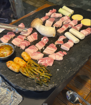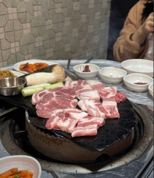 | 돌판 삼겹살 | (가격 별도 문의) | 두꺼운 돌판에 구워 육즙이 풍부한 삼겹살 |