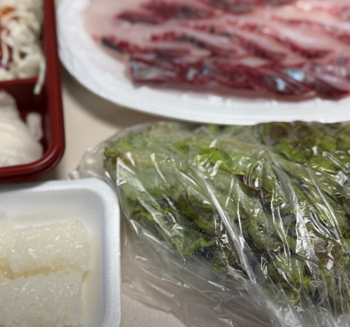 • 1. 회 준비: 대형마트에서 광어나 연어 필렛을 구매해 먹기 좋은 두께로 썹니다. 썰기 전 키친타월로 수분을 제거하면 훨씬 찰진 식감이 납니다.