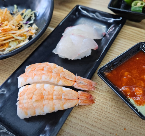 • 2. 초밥 샤리 만들기: 따뜻한 밥에 식초 3, 설탕 2, 소금 1의 비율로 배합초를 섞어 한입 크기로 뭉쳐둡니다.