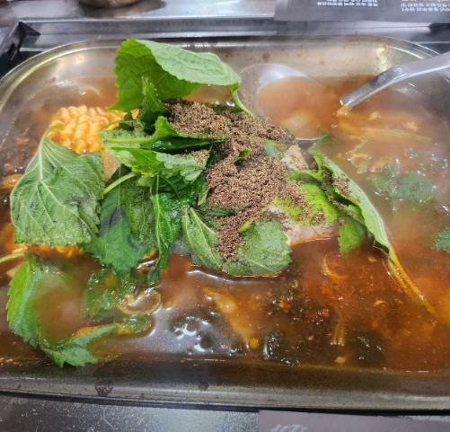 구이를 다 드신 후에는 반드시 양고기전골을 주문해야 합니다. 들깨가루와 깻잎이 듬뿍 들어가 감자탕과 비슷한 비주얼을 자랑하지만, 한 입 떠먹어보면 마포 양갈비구이, 양고기전골 중 전골만이 가진 깊고 진한 맛에 감탄하게 됩니다. 양고기 살코기가 듬뿍 들어간 전골 국물은 칼칼하면서도 구수하여 해장용으로도, 술안주로도 일품입니다. 마포 양갈비구이, 양고기전골 두 메뉴의 조화는 김국환 씨가 20년 동안 이곳을 찾게 만든 결정적인 이유이기도 합니다.