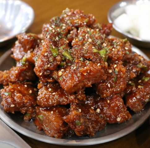깡통야시장 골목 내 또 다른 명물인 반달고깃은 정석에 충실하면서도 깊은 맛을 내는 부산 돼지갈비 후라이드, 닭강정 맛집입니다. 이곳의 닭강정은 바삭하게 튀겨낸 닭고기에 비법 소스를 입혀 식어도 맛있는 것이 특징인데요. 부산 돼지갈비 후라이드, 닭강정을 세트로 즐기려는 분들에게는 최적의 장소입니다. 부산 돼지갈비 후라이드, 닭강정 중 닭강정은 남녀노소 누구나 좋아하는 대중적인 맛으로 시장 방문객들의 필수 구매 리스트에 올라 있습니다.