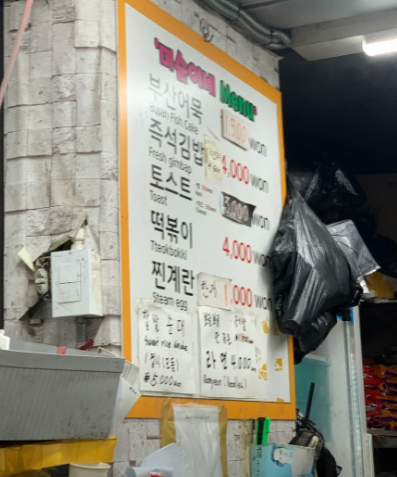 | 대표 메뉴 | 시장 토스트, 매콤 떡볶이, 튀김, 어묵 등 |