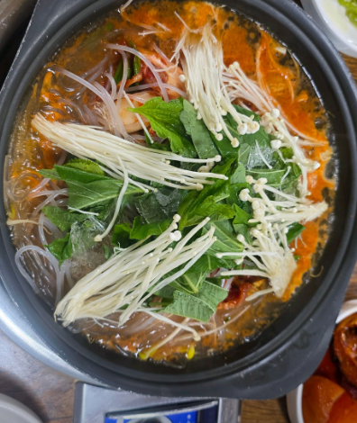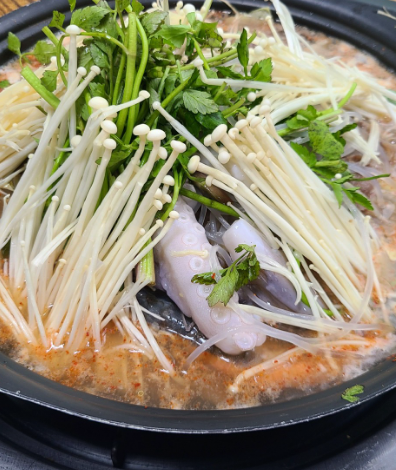 - 4. 마지막에 불을 끄고 미나리를 듬뿍 얹어 잔열로 숨을 죽이면 완성입니다.