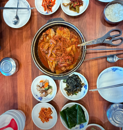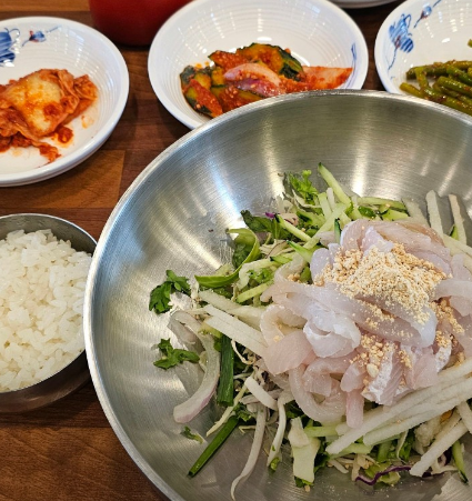 경주 가자미 요리 한 상을 받으면 그 푸짐함에 먼저 놀라고, 입안에 넣는 순간 퍼지는 신선함에 두 번 놀라게 됩니다. 회를 못 드시는 분들을 위해 묵은지고등어 요리도 준비되어 있어 가족 단위 방문객에게도 적합한 경주 가자미 요리 전문점입니다.