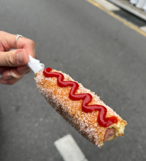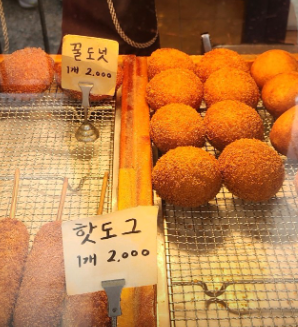 | 찹쌀 핫도그 | 2,000원 | 겉바속촉 늘씬 핫도그, 케첩 소스 제공 |