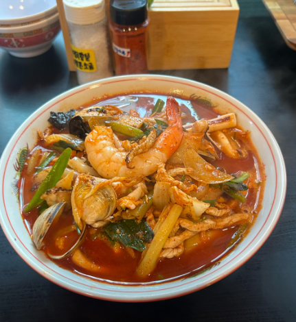 - 5. 삶은 면 위에 소스를 얹고 기호에 따라 고춧가루를 살짝 뿌려 마무리합니다.