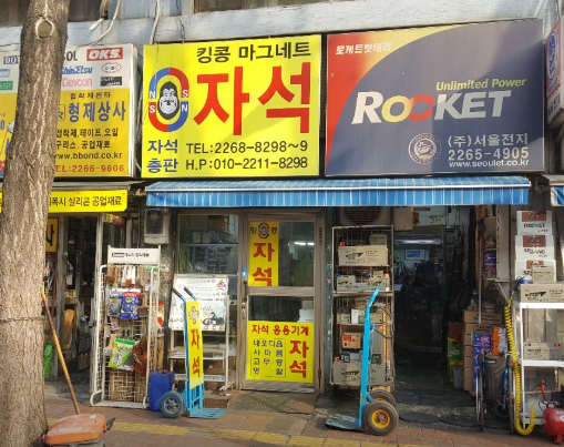 '킹콩마그네트'는 서울 종로구 장사동, 흔히 종로의 공구상가 밀집 지역에 자리하고 있으며, 자석 및 자석 응용 제품을 전문으로 취급하는 업체입니다. 이곳의 달인은 자석의 종류와 특성을 완벽히 파악하고 고객의 용도에 맞춰 최적의 자석을 추천해주는 '자석 컨설턴트' 역할을 수행합니다.