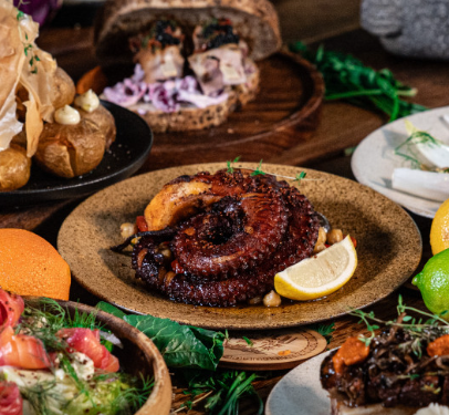 - 소스 및 플레이팅: 문어 다리를 올리브 오일에 살짝 굽거나, 토치로 겉면을 그을려 불맛을 더합니다.