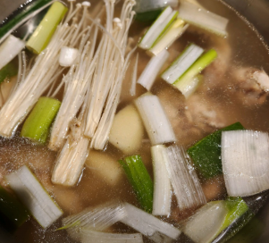 - 국물 준비: 닭이 익으면 닭고기를 건져내고, 국물을 면포에 걸러 맑고 깨끗한 육수만 준비합니다.