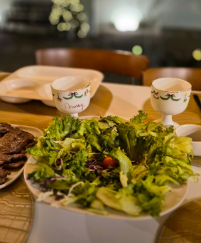 두툼한 삼겹살이나 목살을 준비해 소금과 후추만으로 간을 합니다. 센 불에서 겉면을 빠르게 구운 뒤 약불에서 천천히 익히면 고성 한옥스테이에서 즐기던 바비큐의 풍미를 집에서도 느낄 수 있습니다. 쌈 채소와 된장찌개를 곁들이면 더욱 완성도가 높아집니다.