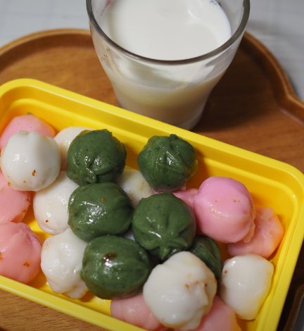 - 재료: 찹쌀가루 200g, 소금 1/2t, 설탕 1T, 따뜻한 물 150ml, 볶은 콩가루