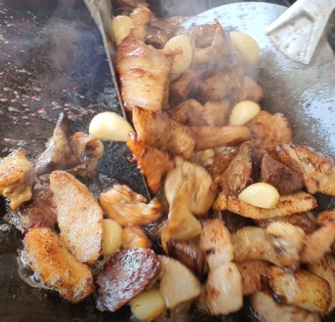 - 마무리: 불을 끄고 형제기름집에서 사 온 성남 참기름, 부속고기무한리필을 한 바퀴 두르고 깨를 뿌리면 완성입니다.