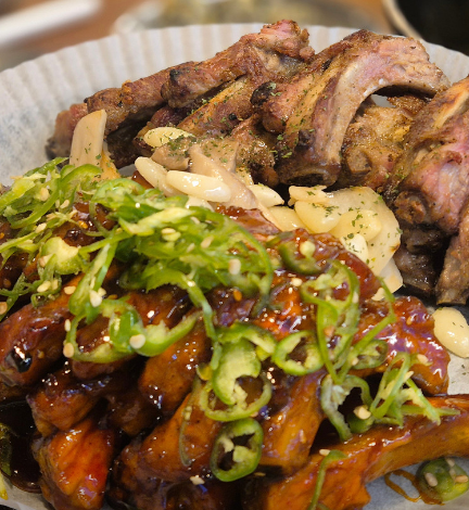 | 바베큐 쪽갈비(1kg) | 보통맛과 매운맛 선택 가능, 중독성 있는 양념 맛 | 40,000원 |