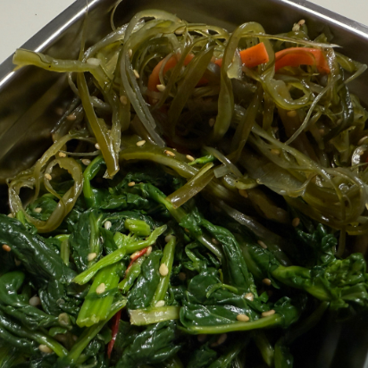 - 그 위에 '엄마손반찬'에서 구매한 시금치나물, 고사리나물, 콩나물 등 다양한 '반찬(경기 수원)'을 보기 좋게 올려줍니다.
