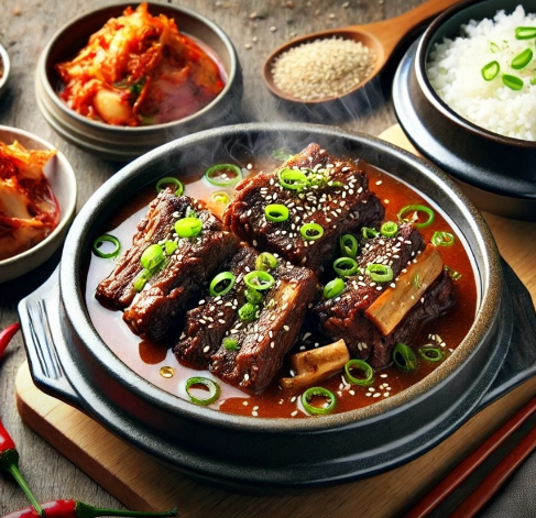 - 마무리: 조려진 갈비찜을 진한 육수 그릇에 함께 담아내어 부산 소갈비찜탕 형태로 완성합니다.