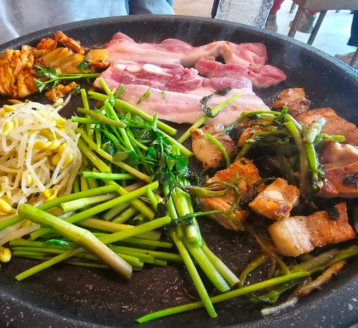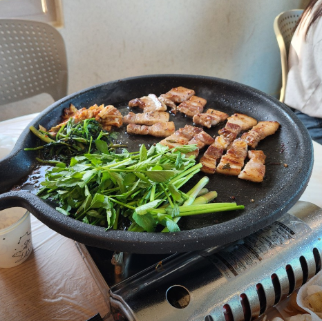 청도 오리소금구이, 생삼겹살 맛의 비결은 불판 위에서 고기 기름에 살짝 구워낸 미나리에 있습니다. 특히 청도 오리소금구이, 생삼겹살 구성 중 오리소금구이는 담백함이 일품이라 어르신들께 인기이며, 청도 오리소금구이, 생삼겹살 중 생삼겹살은 남녀노소 누구나 좋아하는 국민 메뉴입니다. 청도 오리소금구이, 생삼겹살 투어는 화악산의 수려한 경관과 함께 즐기기에 최적의 선택입니다. 청도 여행을 계획하신다면 청도 오리소금구이, 생삼겹살 진수를 한재마실에서 꼭 경험해 보시길 권해드립니다.