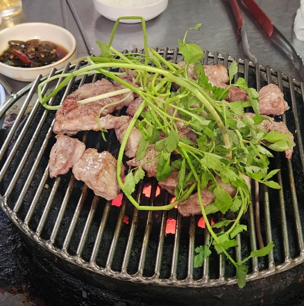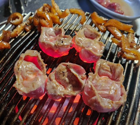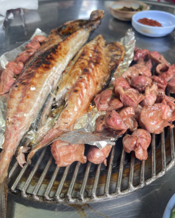 이곳의 대표 메뉴인 껍데기는 잡내 없이 쫀득한 식감을 자랑합니다. 콩가루에 찍어 먹으면 고소함이 배가 되며, 술안주로 이만한 것이 없습니다. 뒤이어 맛보는 돼지갈비는 양념이 너무 달지 않고 적당히 배어 있어 남녀노소 누구나 좋아할 맛입니다. 하지만 무엇보다 놀라운 것은 이곳의 숨은 보석 같은 메뉴인 고등어구이입니다. 고깃집에서 웬 생선구이인가 싶겠지만, 연탄불에 직접 구워낸 고등어구이 맛은 웬만한 생선구이 전문점보다 뛰어납니다.