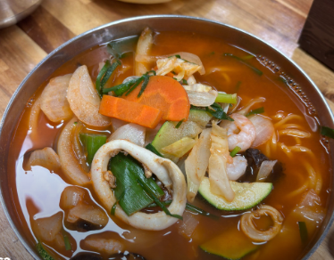 - 해물(오징어, 새우 등)을 넣고 살짝 볶은 후, 시판 짬뽕 소스(또는 라면 스프)와 물을 넣고 끓입니다.