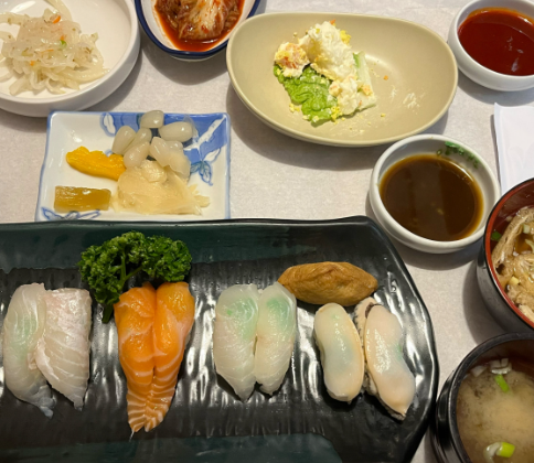 | 대표 메뉴 | 모듬초밥 | 20,000원 | 전복, 새우, 연어, 활어회 등 다양한 구성의 초밥 |