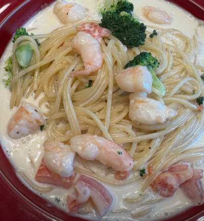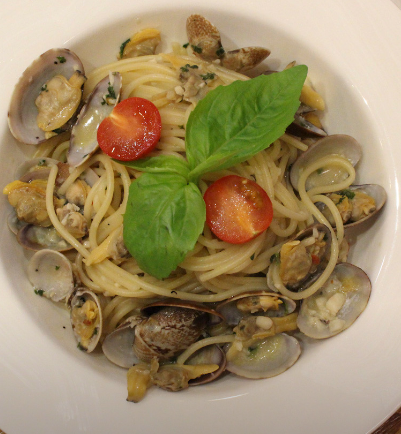 - 1. 재료 준비: 스파게티 면, 캔 토마토(홀), 다진 마늘 듬뿍, 양파, 베이컨, 새우, 오징어, 바질, 올리브유, 소금, 후추.