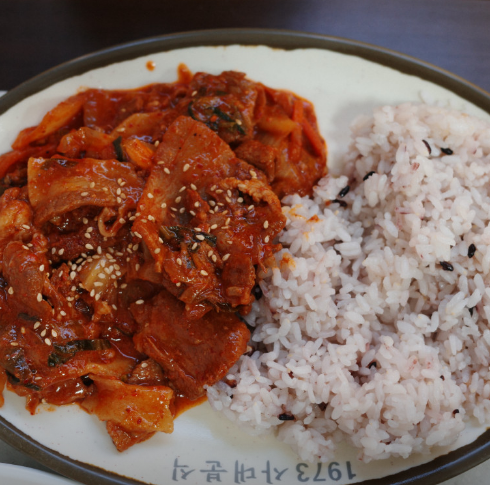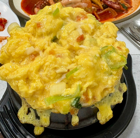 여기에 곁들이는 세종대 섞어찌개, 계란찜 세트의 핵심인 계란찜은 압도적인 비주얼을 자랑합니다. 뚝배기 위로 봉긋하게 솟아오른 일명 폭탄 계란찜 스타일로, 숟가락을 대면 푸딩처럼 탱글탱글하게 흔들리는 모습이 인상적입니다. 부드럽고 몽글몽글한 식감 덕분에 매콤한 섞어찌개와는 그야말로 환상의 짝꿍이라 할 수 있습니다. 세종대 섞어찌개, 계란찜 두 메뉴의 조화는 맵단짠의 정석을 보여주며 밥도둑 역할을 톡톡히 합니다.