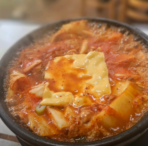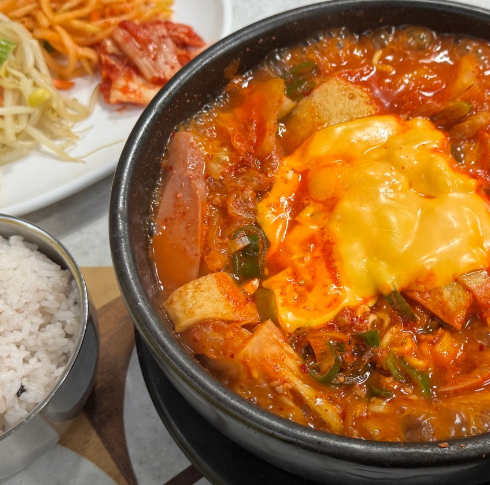 사대분식을 방문한다면 고민할 것 없이 세종대 섞어찌개, 계란찜 메뉴를 선택해야 합니다. 먼저 섞어찌개는 이름 그대로 여러 가지 재료가 조화롭게 섞여 있는 찌개입니다. 부대찌개와 김치찌개의 장점만을 모아놓은 듯한 국물 맛은 칼칼하면서도 시원하여 해장용으로도 인기가 높습니다. 소시지, 햄, 어묵, 두부, 그리고 라면 사리까지 듬뿍 들어가 한 그릇만으로도 성인 남성이 배부르게 먹을 수 있는 양입니다.