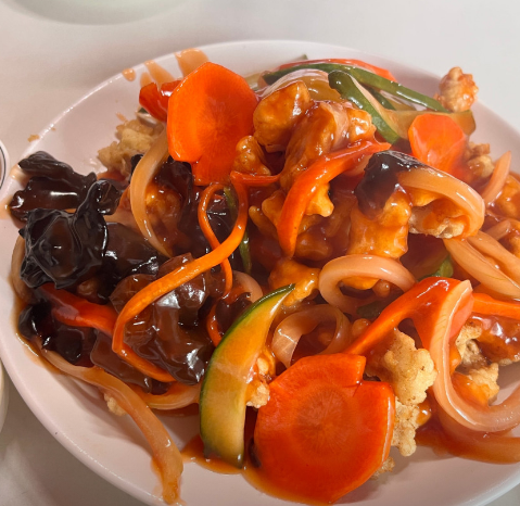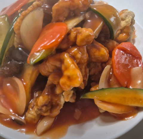 함께 곁들이는 탕수육 또한 빼놓을 수 없는 별미입니다. 은평구 쟁반짜장, 탕수육 구성에서 탕수육은 요즘 유행하는 찹쌀 탕수육과는 다른, 옛날 방식의 바삭한 튀김옷이 돋보입니다. 돼지고기 등심을 두툼하게 썰어 노릇하게 튀겨낸 뒤, 각종 채소가 들어간 달콤새콤한 소스를 부어 내는데, 겉은 바삭하고 속은 촉촉한 '겉바속촉'의 정석을 보여줍니다. 가격 또한 12,000원으로 매우 저렴하여 부담 없이 즐길 수 있습니다.