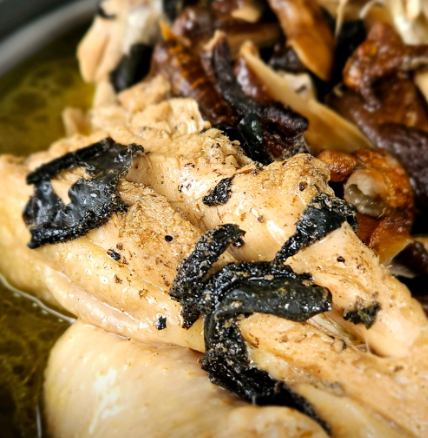 - 석이백숙 완성: 닭백숙을 그릇에 담고, 끓여낸 육수를 부어줍니다. 마지막에 볶아낸 석이버섯 볶음(또는 채 썬 석이버섯)을 고명으로 듬뿍 올려내면 향긋한 석이백숙이 완성됩니다.