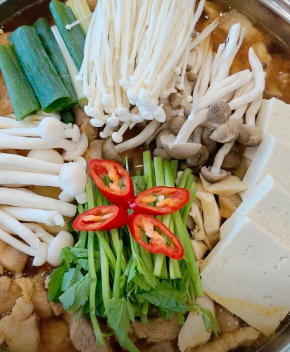 • 재료: 돼지 앞다리살 400g, 무 150g, 대파 1대, 양파 1/2개, 두부 1/2모, 느타리버섯 약간
