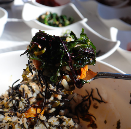 이곳의 대표 메뉴인 톳멍게비빔밥은 남해 멍게비빔밥, 미역국 메뉴는 바다의 보물과도 같습니다. 일반적인 생멍게 비빔밥과는 다르게 멍게를 한번 삶아내어 쫄깃한 식감과 농축된 향을 동시에 살려냈습니다. 여기에 톡톡 터지는 톳의 식감이 더해져 매력적인 조화를 이룹니다. 현지인들도 인정하는 남해 멍게비빔밥, 미역국 조합은 여행의 피로를 풀어줍니다.