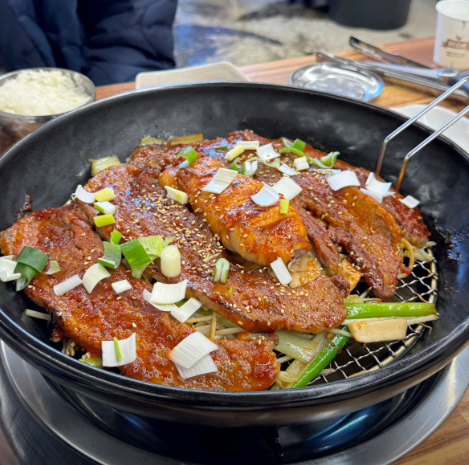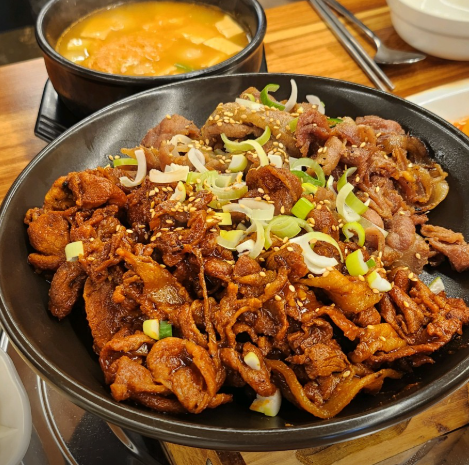 - 마무리: 고기가 거의 익었을 때 양파를 넣고, 마지막에 대파와 청양고추를 넣고 살짝 더 볶아 불 향 가득한 고추장 불고기를 완성합니다. 순창 곰탕과 함께 곁들이면 완벽한 한 상이 됩니다.