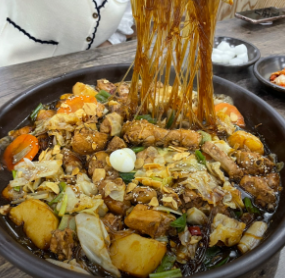 안동의 미식(美食)을 대표하는 음식은 누가 뭐래도 찜닭입니다. 신선한 닭고기에 감자, 당근, 양파 등 각종 채소와 넓적한 당면을 넣고 특제 간장 소스로 조리한 안동 찜닭은 매콤달콤한 맛으로 남녀노소 모두에게 사랑받는 메뉴입니다. 닭고기의 부드러움과 양념이 잘 배인 당면을 함께 맛보는 것은 안동 여행의 백미입니다. 찜닭을 빼놓고 안동을 논할 수 없습니다.